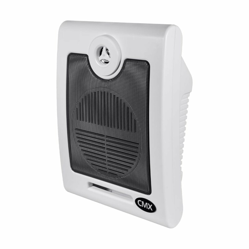 Настінний гучномовець WSK-610W CMX.  Настінний гучномовець широко застосовується в системах для озвучування в громадських місцях. Iдеально підходять для музичного супроводу у торгових центрах, школах, ресторанах у складі систем оповіщення всіх типів. Номінальна вихідна потужність 10 Вт. Лінійний вхід 100 В. Корпус ABS-пластик, решітка зі сталі, білого кольору. Швидкий монтаж за допомогою гвинтового отвору.