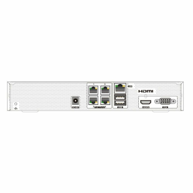 - 4-канальний мережевий відеореєстратор – підтримує підключення до 4 IP-відеокамер.