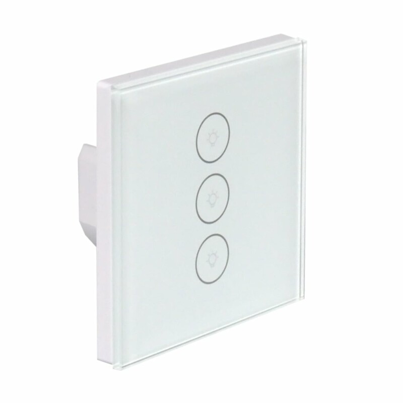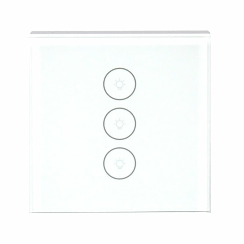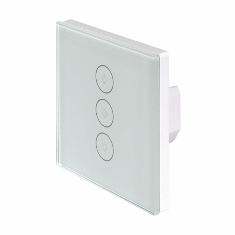 Розумний потрійний вимикач світла Trinix TRX-LS03(WiFi) з підтримкою WiFi 2.4 ГГц (IEEE 802.11b/g/n) та можливістю керування і налаштування через мобільний застосунок Tuya. Сенсорна кнопка керування. Голосове керування через Google Assistant та Amazon Alexa. Можливість встановити таймер та розклад увімкнення/вимкнення освітлення.