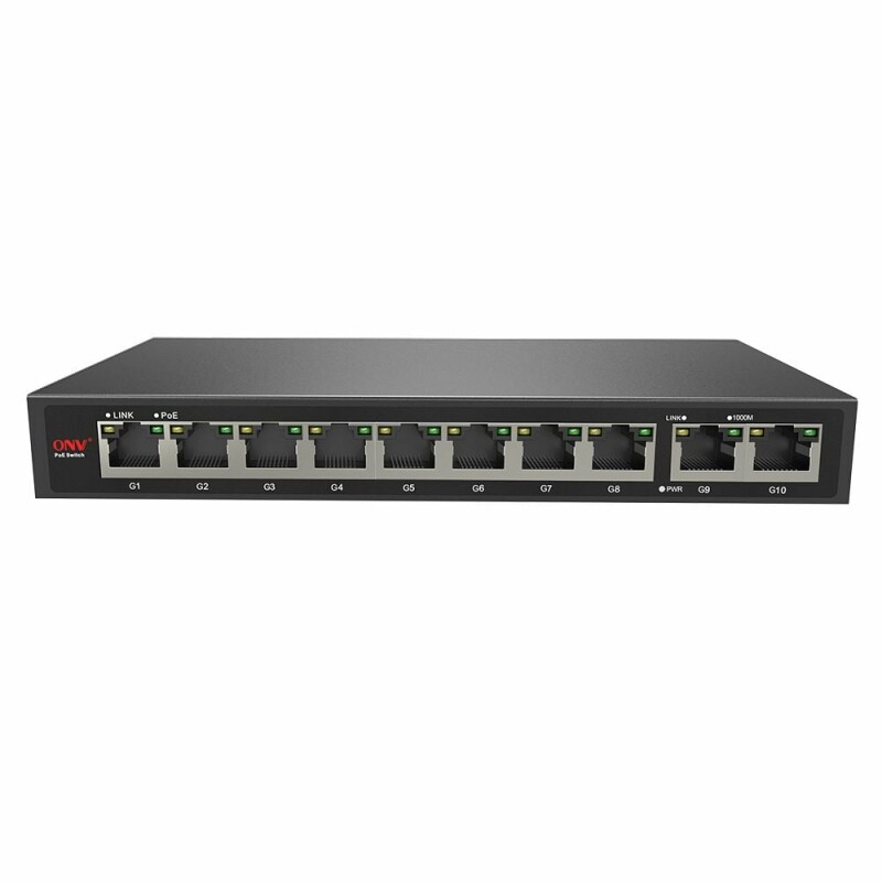 Комутатор PоE ONV-POE33108P підійде для невеликого чи середнього офісу, готелів, магазинів, лікарень тощо. PoE-комутатор застосовується у відеоспостереженні для передачі одним кабелем вита пара відеосигналу та живлення. Пристрій успішно живить 8 мережевих камер, що підтримують формат електроживлення через PoE.