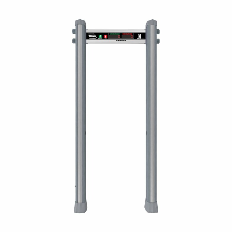 Арочний металодетектор Trinix TRX600AMD з 18 зонами детекції та 2000 рівнями чутливості, LED-екран з відображенням кількості проходів і тривог, світлодіодна та звукова індикація, лічильник проходів і тривог, захист паролем зміни параметрів. Водонепроникний матеріал зовнішніх панелей з класом захисту IP65, можливість зовнішнього використання.