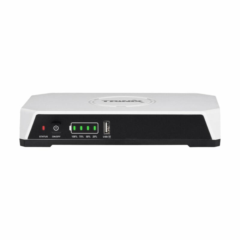Мініатюрне джерело безперебійного живлення Trinix TRX-MUPS-3648PoE (20000mAh LiFePo4) з чотирма вбудованими акумуляторними батареями LiFePo4 ємністю 5000 мАг (загальна ємність 20000 мАг), вихідні інтерфейси USB, DC *3, PoE, вихідна напруга 5 В (USB/DC1) + 9 В (DC2) + 12 В (DC3) + 24/48 В (PoE), вихідна напруга/струм кожного виходу: USB/DC1: 5В/3А, DC2: 9В/3А, DC3: 12В/3А, PoE: 24В/1А, 48В/0.5А, максимальна вихідна потужність 36 Вт, вхідна напруга AC 100-240 В/50-60 Гц.