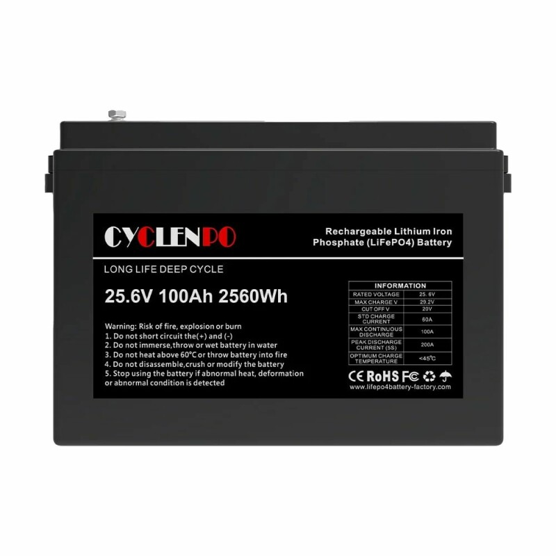 Акумуляторна батарея Cyclen 25.6V 100AH LiFePo4 ємністю 100 Аг, з вихідною напругою 25.6 В, тип – літій-залізо-фосфатна (LiFePO4), кількість циклів: > 6000.