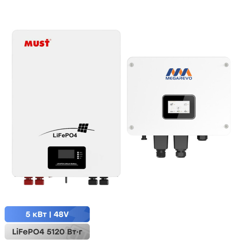 Must LP16-48100 – літій-залізо-фосфатна акумуляторна батарея напругою 51.2 В та ємністю 100 Аг / 5120 Втг, частина системи накопичення енергії. Максимальний струм заряду/розряду 100 А/100 А. Ресурс: 6000 циклів заряджання-розряджання. Комунікаційні порти CAN, RS485, RS232, WiFi. В одну систему можна підключити до 15 акумуляторних модулів. Настінний монтаж.
