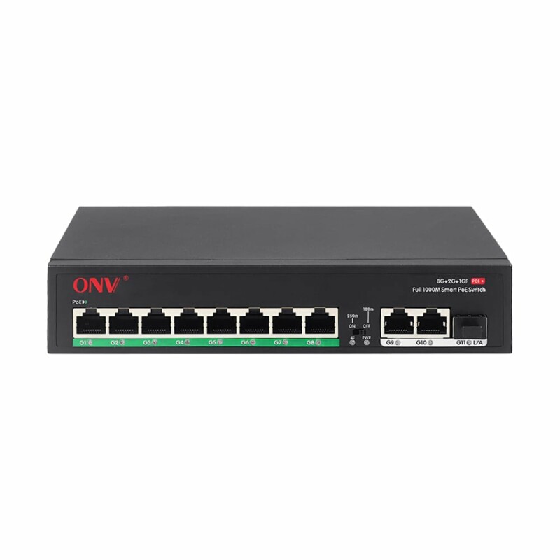 Комутатор PоE ONV-H3108PFD підійде для побудови мереж та передачі даних на об’єктах малого та середнього масштабу. PoE-комутатор застосовується у відеоспостереженні для передачі одним кабелем вита пара відеосигналу та живлення. Пристрій успішно живить 8 мережевих камер, що підтримують формат електроживлення через PoE.