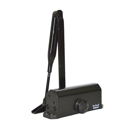 Дотягувач DORMA TS77 верхнього розташування, накладного монтажу, класичний, за технологією "шестерня-рейка". Колір - коричневий, зусилля - EN4. Максимальна вага двері: 90кг (при ширині двері 120мм). Для стандартних та протипожежних дверей. Два незалежних діапазони регулювання швидкості закривання. Монтаж на полотно з боку петель або на коробку двері з протилежного боку. Універсальний для лівого і правого відкривання. У комплекті зі стандартним важелем.
