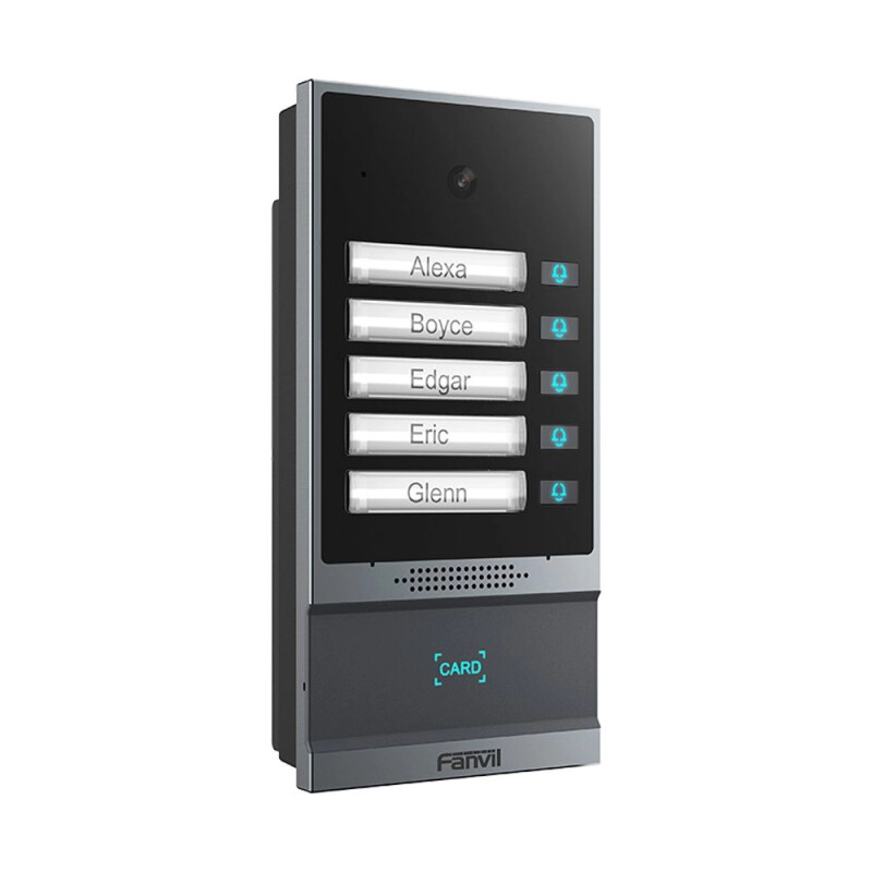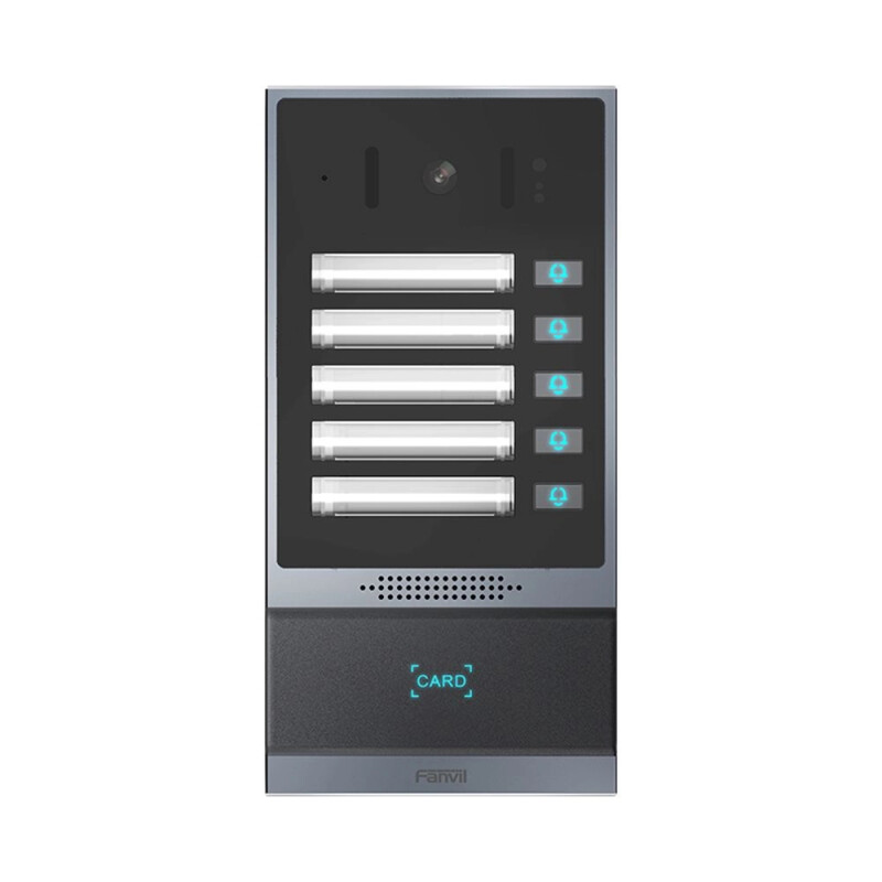 IP панель виклику Fanvil i63 з кнопками швидкого виклику — багатоабонентська SIP-виклична панель нового покоління, що поєднує в собі функції контролю доступу, інтеркому та відеоспостереження для сучасних житлових комплексів, офісних будівель, малих апартаментів і котеджних селищ. Модель обладнана п'ятьма програмованими кнопками виклику з індивідуальними підписами, що дає змогу швидко зв'язуватися з потрібними абонентами або службами. Вбудована 2-мегапіксельна HD-камера з підтримкою HDR, інфрачервоним і білим підсвічуванням забезпечує чітке і деталізоване відеоспостереження за будь-якого освітлення, а широкий кут огляду (120° за горизонталлю, 60° за вертикаллю) виключає сліпі зони на вході.