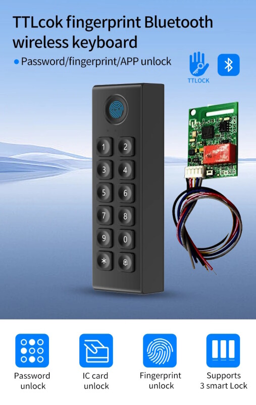 • Способи відкриття: код з клавіатури, застосунок TTLock, BLE-команда, пульт (опція)