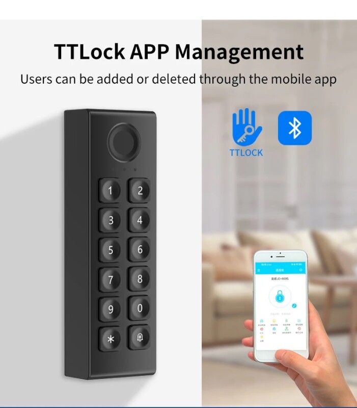 - Віддалений контроль через TTLOCK — налаштування, додавання користувачів, перегляд історії.
