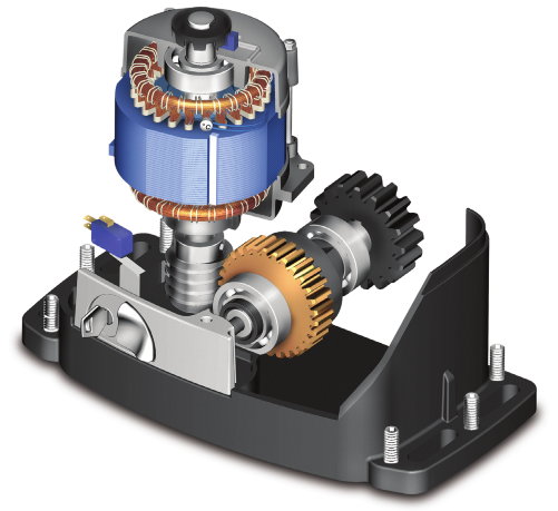 Редуктор, що самоблокується, гарантує замикання воріт, виключаючи необхідність встановлення додаткових замків. На випадок відсутності напруги в електромережі для відкривання воріт вручну, передбачено практичну рукоятку розблокування, що відмикається персональним ключем.