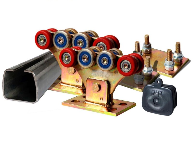 Посилена напрямна консоль (60*70*3,5мм), посилені металеві роликові опори + полімерний ролик, верхній обмежувач (2 регульованих ролика), накатний ролик, нижній уловлювач, ВЕРХНІЙ УЛОВЛЮВАЧ, заглушка.