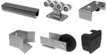 Консольна труба (чорна) 6м, каретка опорна (2шт), обмежувач (4 ролика), ролик накатний, уловлювач нижній, заглушка (2 шт)