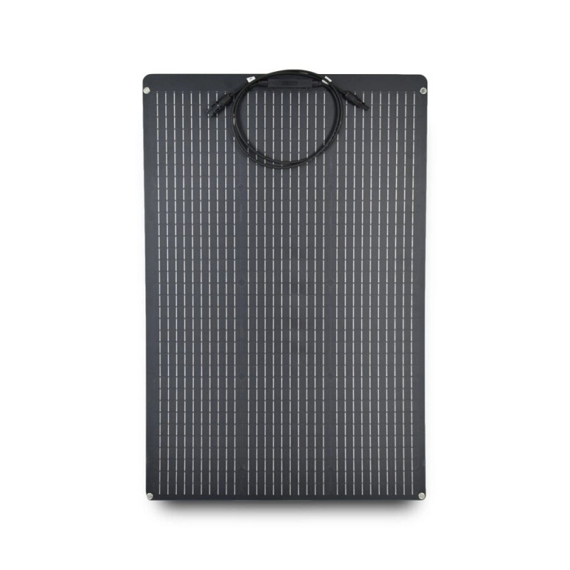 Гнучкі монокристалічні елементи забезпечують високий ККД при невеликих розмірах 879,2 × 580 мм. Поверхня стійка до вологи, ультрафіолету і легких механічних навантажень. Конструкція дозволяє кріпити панель на вигнуті поверхні без ризику пошкоджень. У комплекті кабель з роз'ємами MC4, при необхідності кілька панелей можна об'єднати паралельно або послідовно.