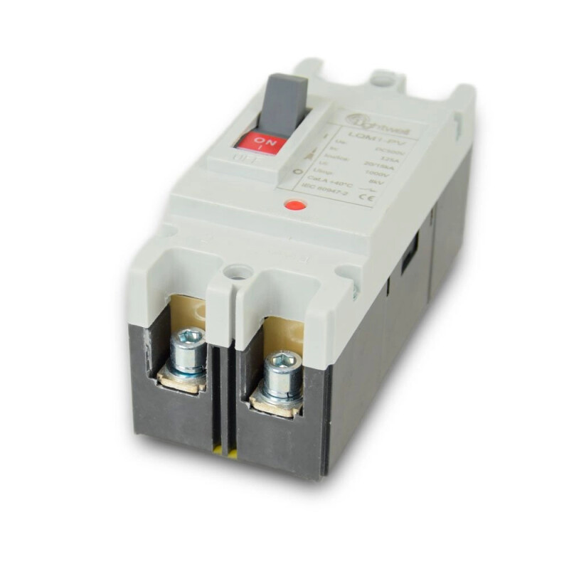 Двополюсний автоматичний вимикач постійного струму LQM1-125Z/2P/63-125A DC500V для захисту акумуляторних батарей, інверторів та інших компонентів сонячних та альтернативних енергетичних систем. Забезпечує надійну ізоляцію та захист від короткого замикання та перевантаження, що робить його ідеальним вибором для застосування у PV-системах.