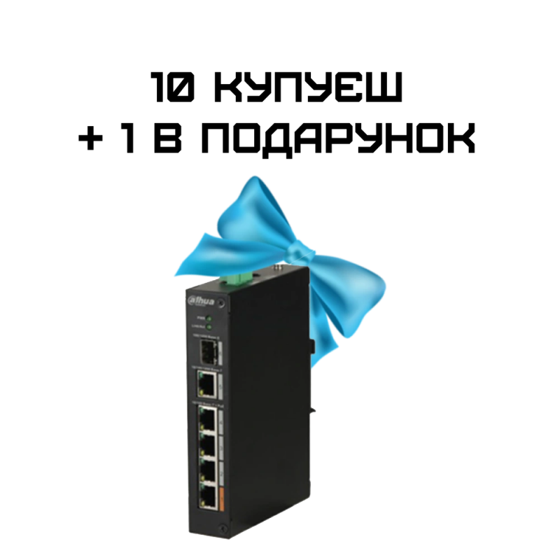 Комплект 10+1 Dahua DH-PFS3106-4ET-60 POE