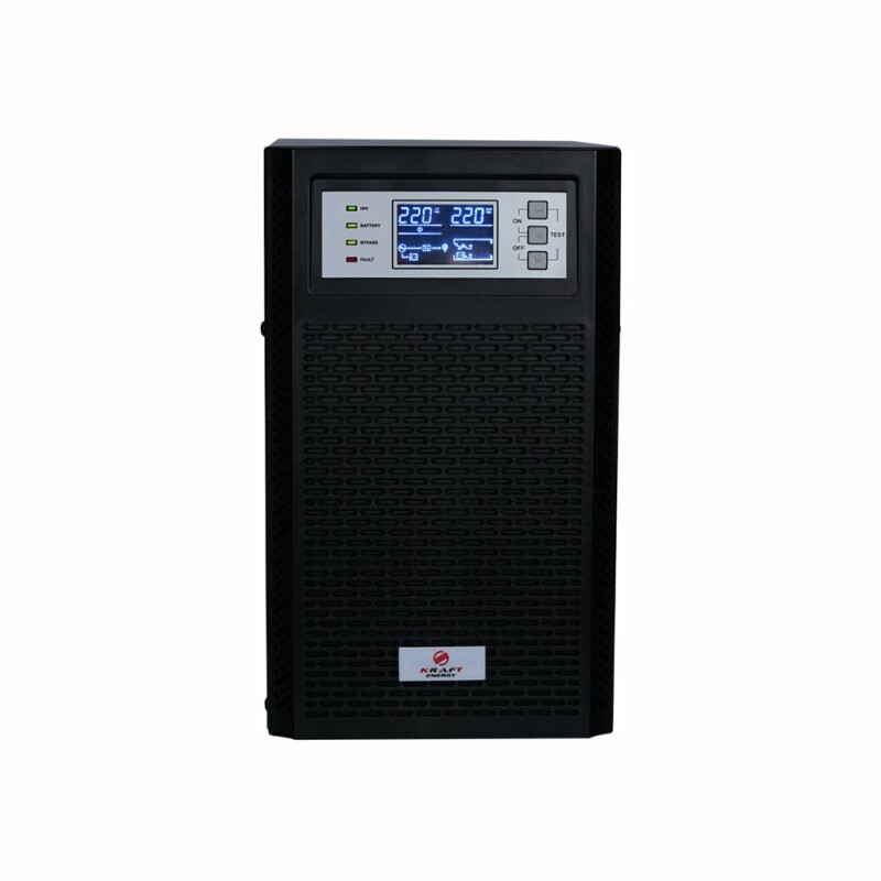 Джерело безперебійного живлення KRF-T6000VA/6KW(LCD)Ex Pro Online UPS, онлайн (подвійного перетворення), потужністю 6000 ВА / 6000 Вт, з правильною синусоїдою, зовнішні АКБ 192 В DC, регульований струм заряду 1-12 А, LCD-дисплей. Підходить для котлів.