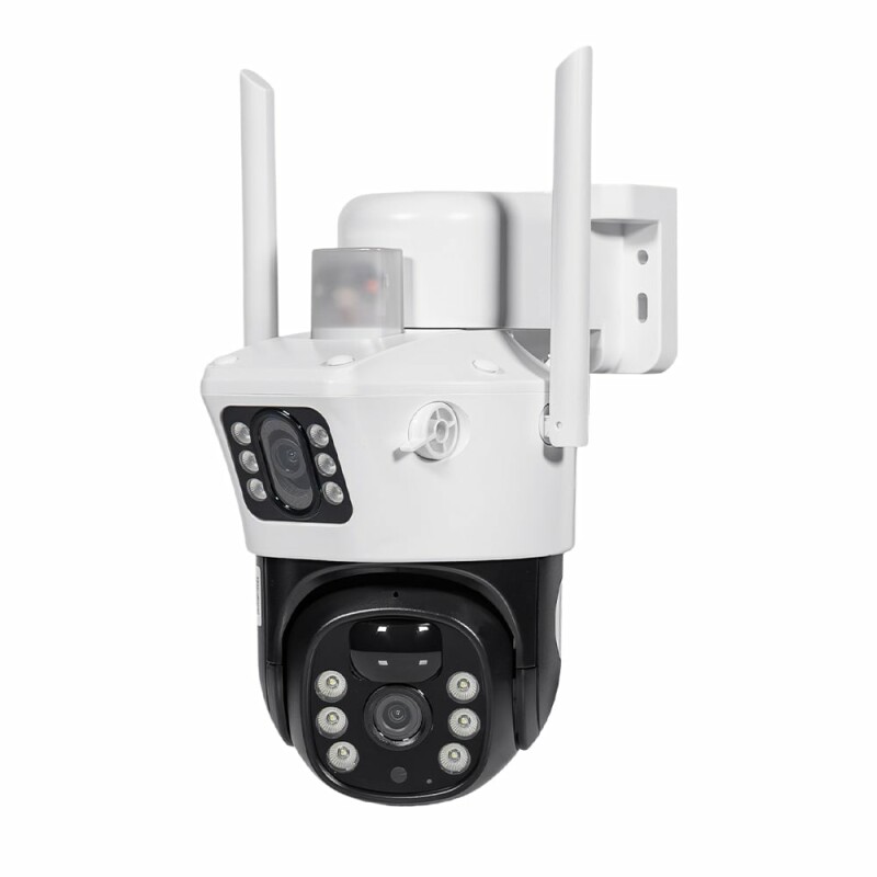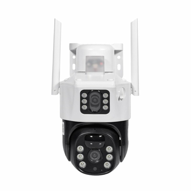 2Mp+2Mp автономна поворотна IP-відеокамера з підтримкою 4G, з сонячною панеллю та вбудованим акумулятором; матриця 1/2.9″ CMOS; роздільна здатність 2Mp+2Mp (1920*2160); ІЧ-підсвічування до 20 м + LED-підсвічування до 20 м; відеокомпресія H.265; фіксований об’єктив f=4 мм, кут огляду 110°; кути повороту/нахилу 355°/90°; чутливість 0.1 Люкс@F2.0, 0 люкс з ІЧ; керування через мобільний застосунок V380; стандарт бездротового зв’язку 4G LTE; вбудований детектор руху з виявлення руху до 12 м; живлення: DC 5 В/2 А (роз'єм живлення USB Type-C), сонячна панель потужністю 7.5 Вт та вбудована акумуляторна батарея ємністю 10000 мАг; вбудовані мікрофон і динамік; запис на microSD карту до 128 Гб; ступінь захисту IP66; робоча температура -10°C~+60°C; розміри камери 175 / 205 / 140 мм, панелі 170 / 5 / 240 мм; вага 755 г