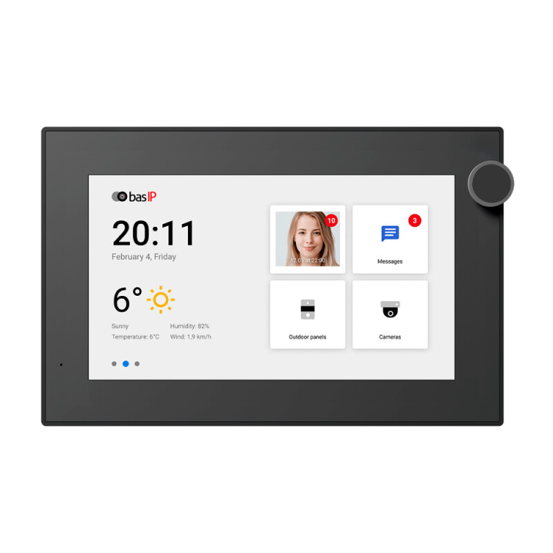 IP-відеодомофон підтримує віддалене управління через безплатний мобільний застосунок BAS-IP Intercom. Користувач отримує push-повідомлення про виклики з панелі, спрацьовування сигналізації та інші події. Також у застосунку можна переглядати архів викликів і зберігати фотознімки з камер панелей виклику.