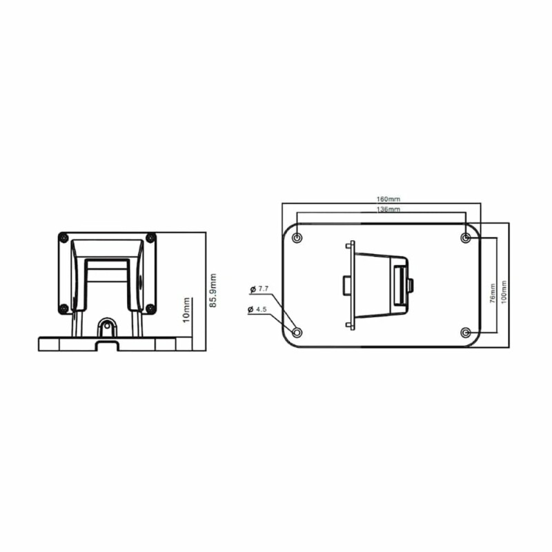 Cтійка для термінала розпізнавання облич настільна. Матеріал: пластик Колір: чорний Розміри: 86x100x160мм Вага: 0,40кг Монтажна поверхня повинна бути достатньо міцною, щоб витримувати щонайменше в 3 рази більше ваги терміналу та кронштейна.