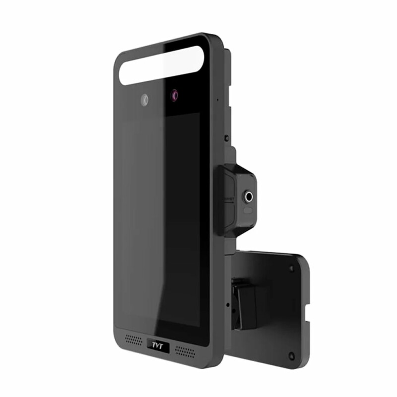 Біометричний термінал розпізнавання облич (в тому числі у масках) та вимірювання температури TVT TD-E2128-B/TM/TP з 8-дюймовим сенсорним LCD-екраном. Розпізнавання облич на висоті 1.2-2.2 м, на відстані 0.3-2 м, з точністю до 99.7%. База даних шаблонів облич 10000. Безконтактне вимірювання температури в діапазоні 32~43°С з похибкою ±0.3°С на відстані до 5 см.