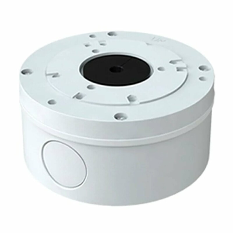 Коробка розподільна TVT TD-YXH0103 для купольних та циліндричних камер для настінного або стельового монтажу, є нижній вхід та бічний вхід для кабелю. Ступінь захисту корпусу IP65.