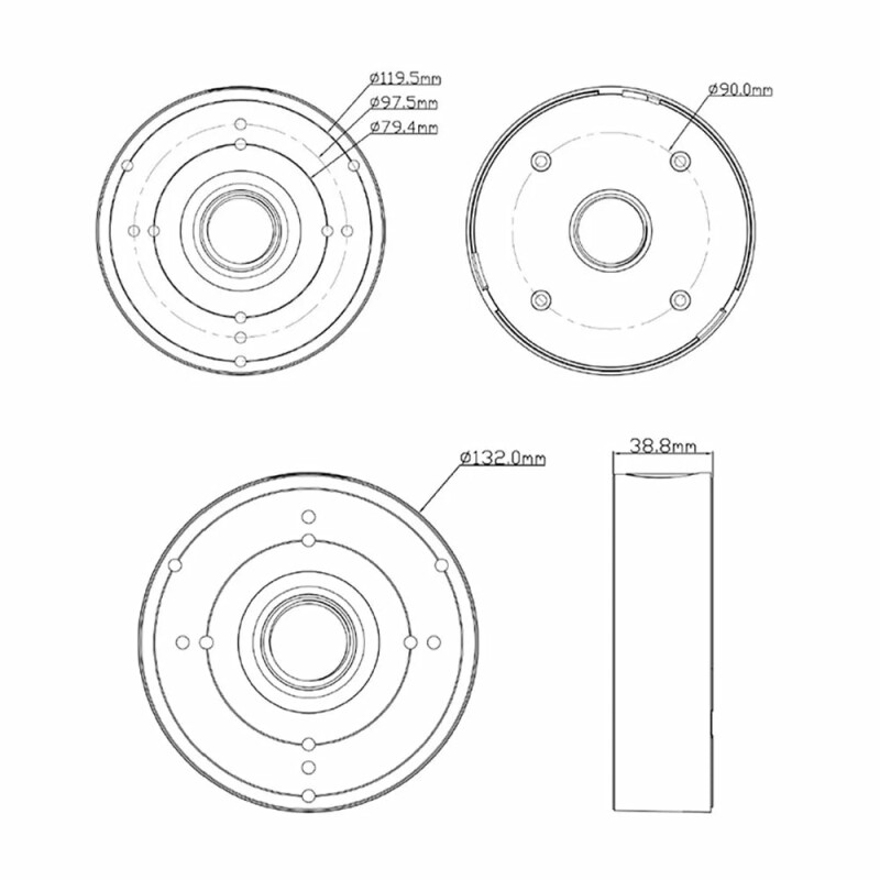 - Нижній вхід і бічний вхід для кабелю. Кабелі камери можна сховати у розподільній коробці, щоб запобігти механічному пошкодженню та для більш охайного вигляду.
