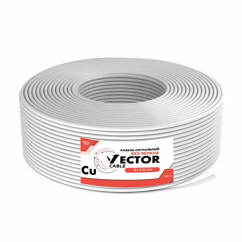 Кабель сигнальний Vector 8x0.22 CU 8-ми жильний кабель неекранований, жили діаметром 0.22 мм, мідь Cu, опір жили 8.5 Ом/100 м. Бухта довжиною 100 м.