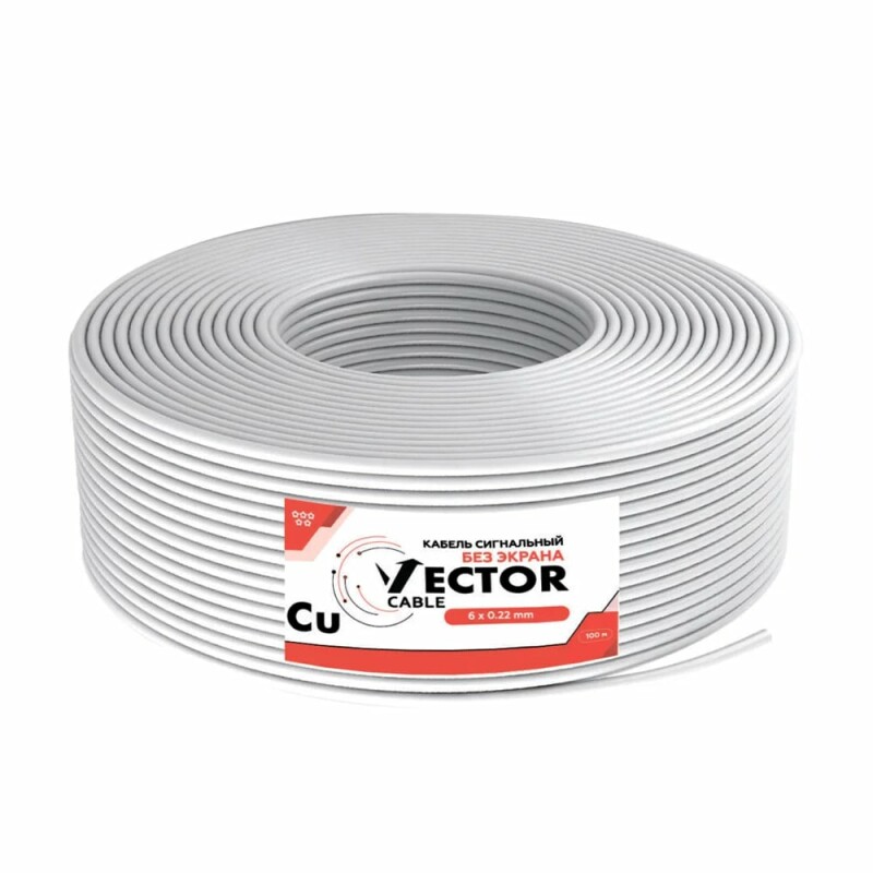 Кабель сигнальний Vector 6x0.22 CU 6-ти жильний кабель неекранований, жили діаметром 0.22 мм, мідь Cu, опір жили 8.5 Ом/100 м. Бухта довжиною 100 м.