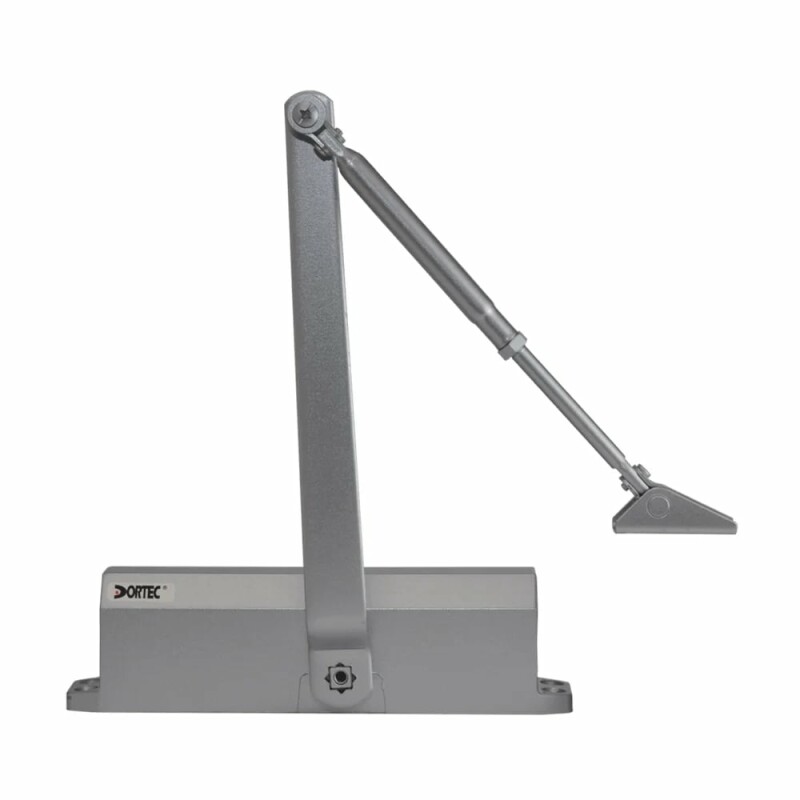 Дверний доводчик Dortec DT-64 Silver зі складаним важелем. Маса дверного полотна 65-85 кг.