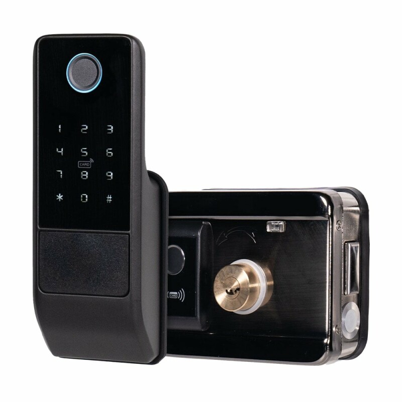Trinix TRL-5202BT2FW – біометричний автономний електрозамок з підтримкою Bluetooth, з доступом за відбитком пальця, кодом, карткою Mifare, ключем, через застосунок TTLock / TTHotel . Підтримка до 100 користувачів за відбитком пальця, 100 за карткою доступу. Універсальне встановлення на правобічні або лівобічні двері. Клас захисту IP65, підходить для зовнішнього встановлення.