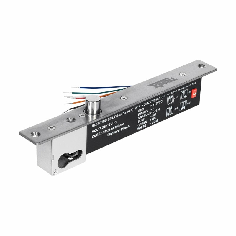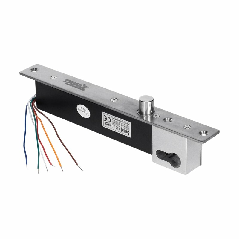 Trinix YB-600+ – врізна електроригельна защіпка, нормально-замкненого типу, з таймером затримки зачинення дверей 0/3/6/9 секунд та можливістю відімкнення механічним способом – ключем ззовні і поворотним механізмом зсередини.