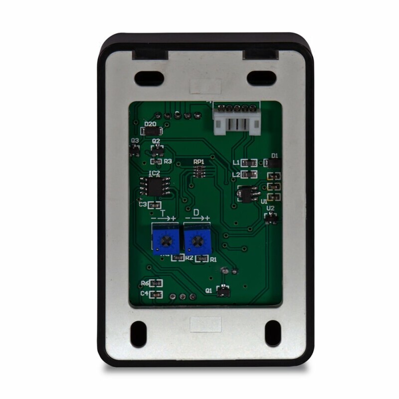 Кнопка виходу безконтактна (регулювання чутливості 12-35 см), накладна, антивандальна, двокольорове діодне підсвічування, матеріал корпусу - пластик. Тип контакту - Н/Р (нормально розімкнений), Н/З (нормально замкнений). Таймер затримки 0-30 сек. Розміри 86 / 55 / 14 мм. Колір корпусу чорний.