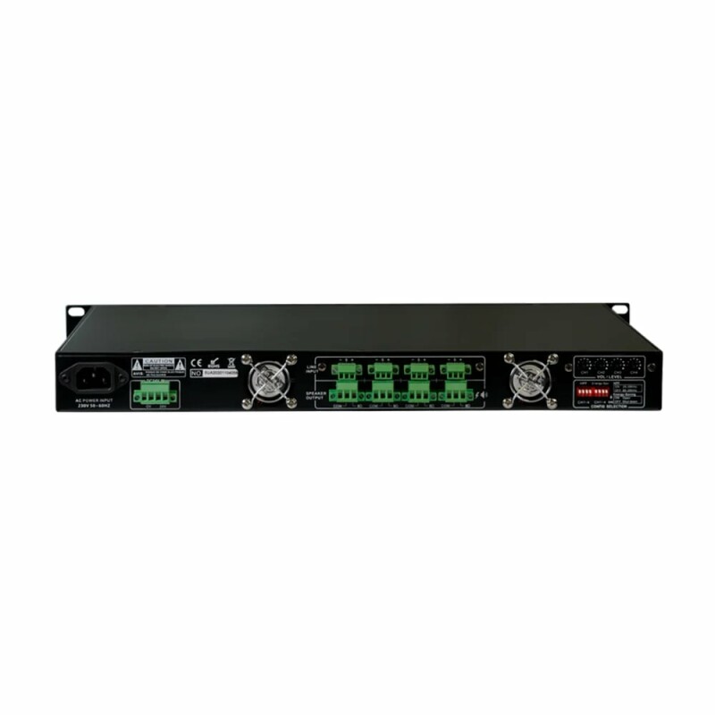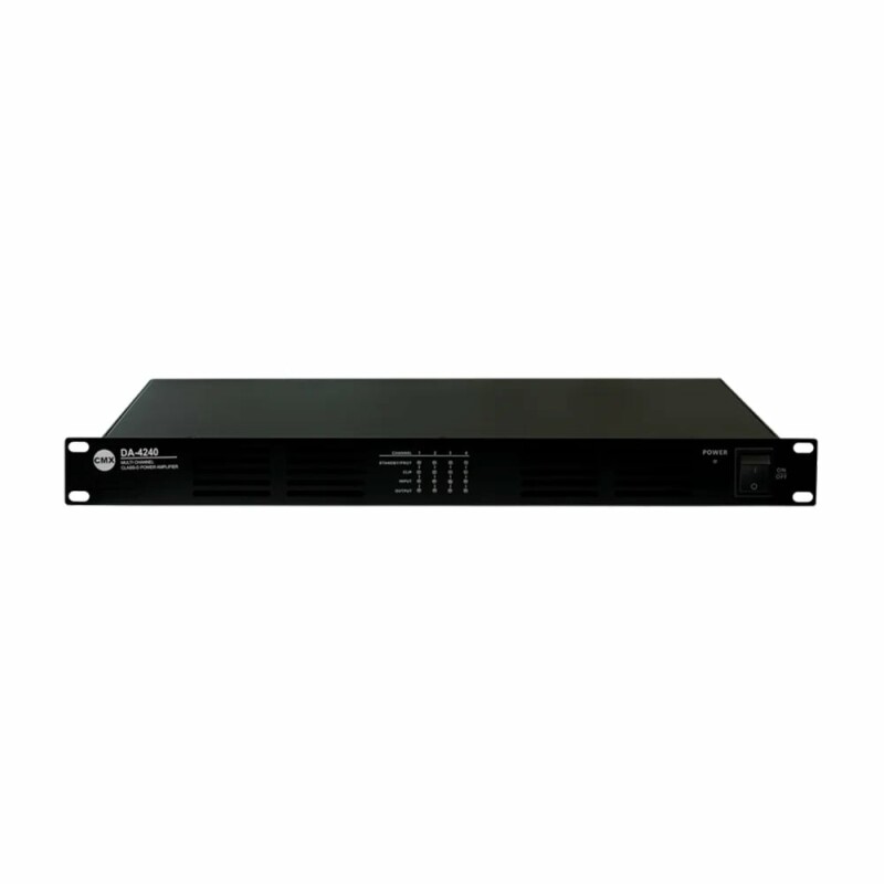 Чотириканальний підсилювач CMX DA-4350, 19" D розроблений на технології перемикання потужності, що відрізняється мінімальним енергоспоживанням і набагато вищим ККД до 85%, крім того, він допомагає заощадити місце у стійці, генерувати менше тепла, щоб збільшити його продуктивність і таким чином продовжити термін експлуатації. Підсилювач потужності серії DA-4350 має вихідну потужність RMS 4 x 350Вт, його можна використовувати як з мікшером, так і з підсилювачем для налаштування системи гучного зв'язку або комерційної аудіосистеми з мінімальними витратами. Універсальні виходи на гучномовці з високим імпедансом 100 В та низьким імпедансом 8 Ом дозволяють використовувати його як при стаціонарній установці PA, так і при установці стереозвуку Hi-Fi. Балансні лінійні входи через роз'єм Phoenix для кожного каналу з регулюванням посилення. Динамік має виходи як на 100, так і на 8 Ом. Вихідні вбудовані фільтри високих частот можуть бути увімкнені або вимкнені за допомогою попереднього налаштування мікроперемикача. Автоматичний вихід з режиму очікування при появі сигналу на вході підсилювача. Візуальні індикатори робочого стану включають захист, затискач, вхід та вихід для полегшення спостереження. З повним захистом від короткого замикання, перевантаження, високої температури, затискання та постійного струму. Перемикач джерела живлення змінного струму від 115 В до 230 В і 24 В постійного струму.