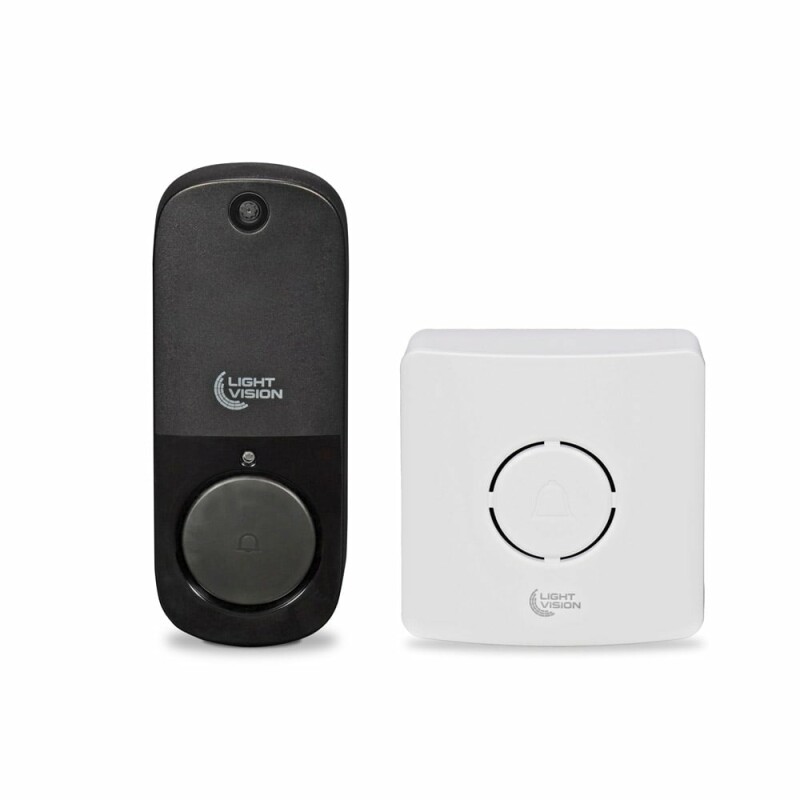 Дверний дзвінок з фото- і відеофіксацією Light Vision VLC-DR10T, працює через WiFi із застосунком TuyaSmart. Автономна робота від 6 батарей типу AA/LR6 – до комплекту не входять, купуються окремо.