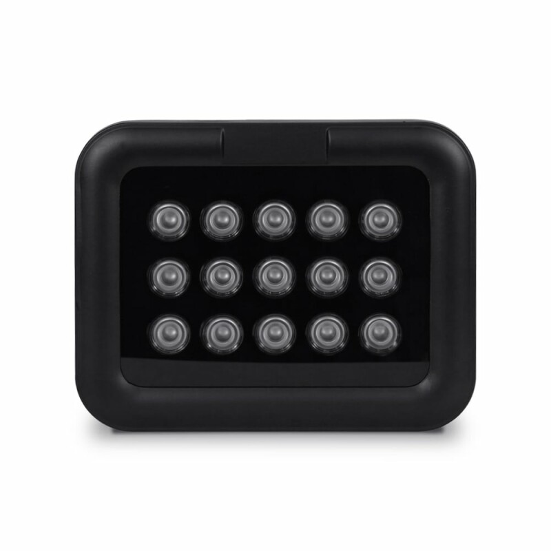 ІЧ-прожектор Light Vision VLC-1512IR 60° з дальністю підсвічування 80 м, довжиною хвилі 850 нм, кутом променя 60°, 15 світлодіодів, живлення 12 В, споживання 0.7 А, клас захисту корпусу IP66.