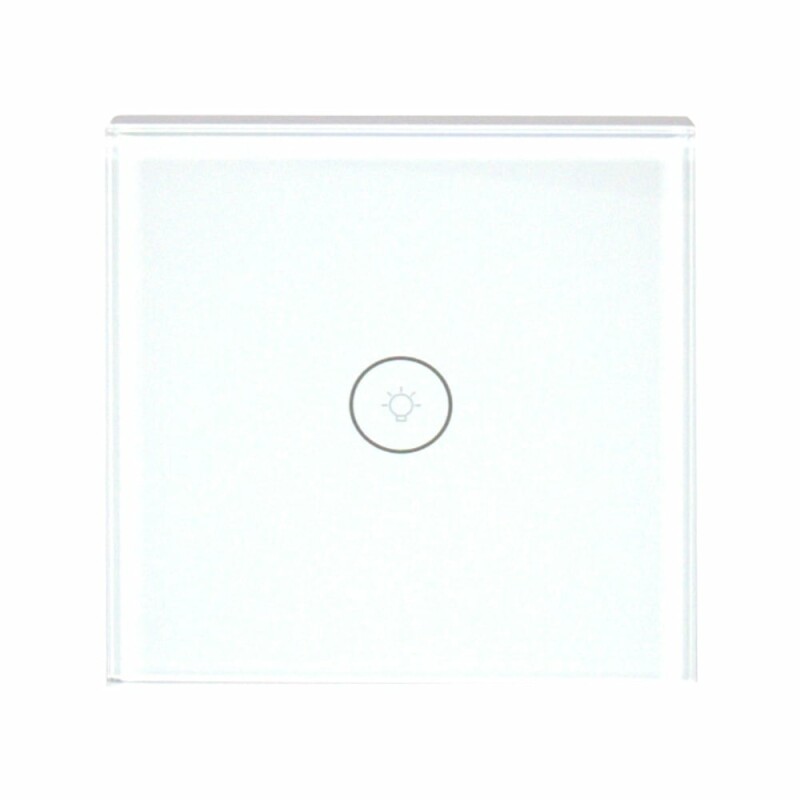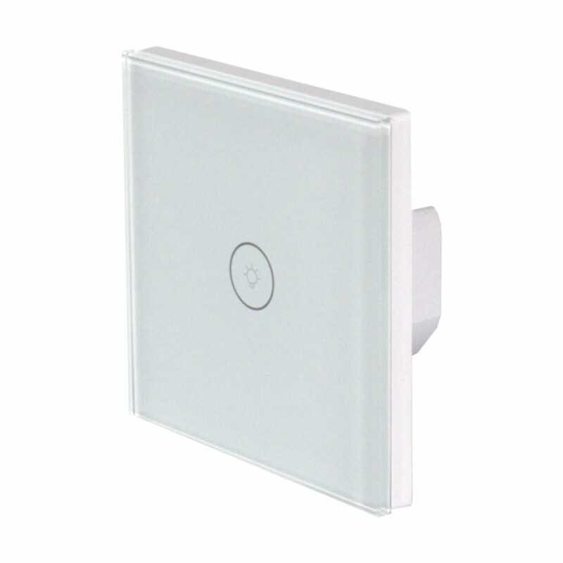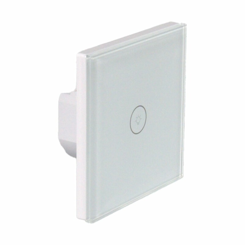 Розумний одинарний вимикач світла Trinix TRX-LS01(WiFi) з підтримкою WiFi 2.4 ГГц (IEEE 802.11b/g/n) та можливістю керування і налаштування через мобільний застосунок Tuya. Сенсорна кнопка керування. Голосове керування через Google Assistant та Amazon Alexa. Можливість встановити таймер та розклад увімкнення/вимкнення освітлення.