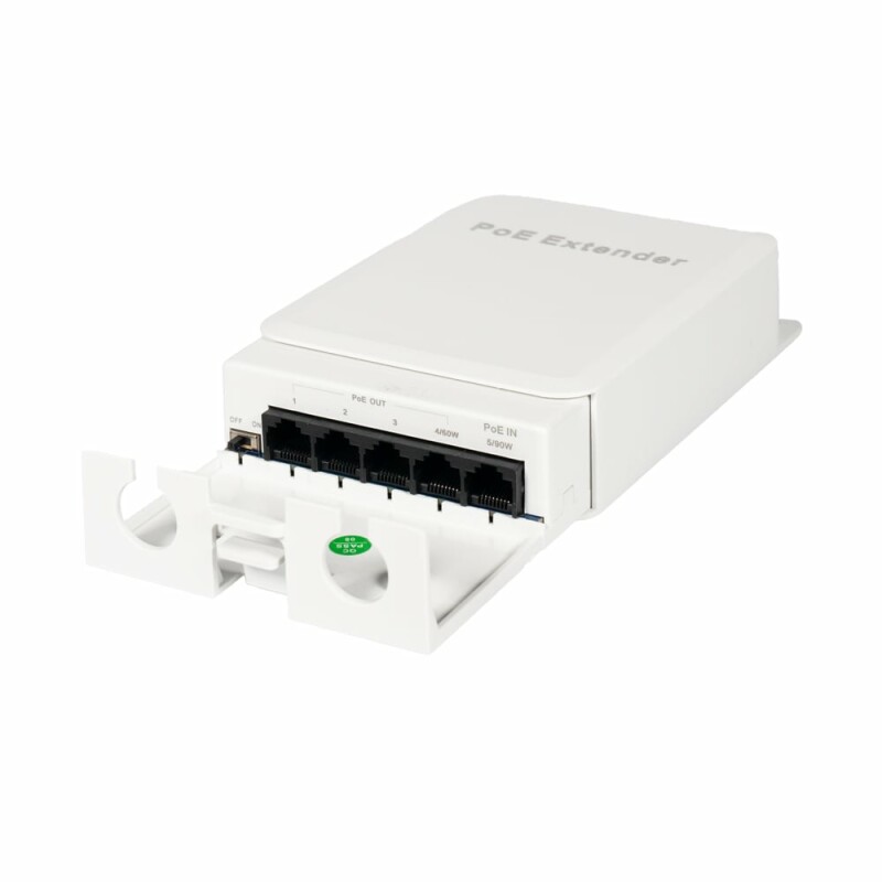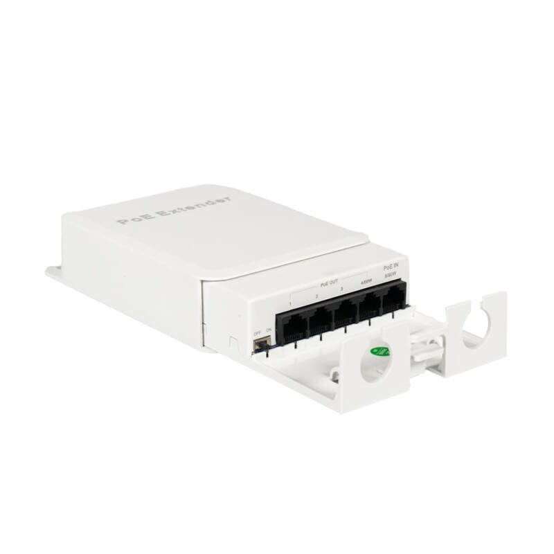 PoE-розширювач дозволяє збільшити дальність дії PoE через кабель вита пара до 100/250 м та передавати живлення через PoE на чотири підключені пристрої.