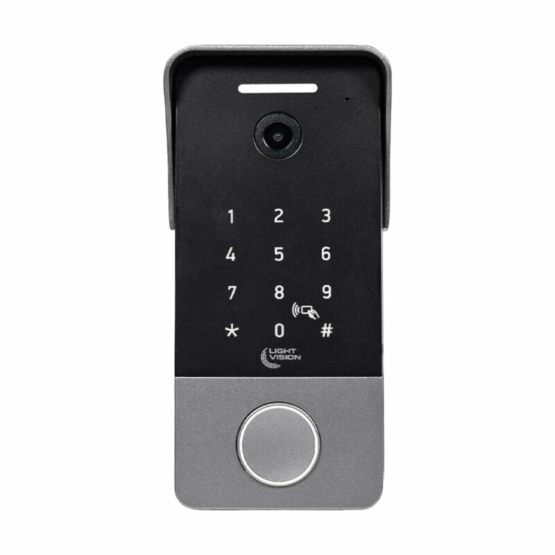 Панель виклику Light Vision RIO FHD(KEY) Silver на 1 абонента з вбудованим зчитувачем Mifare на 200 карт/брелоків та клавіатурою, з роздільною здатністю камери 2 Мп, підтримкою стандартів відеосигналу CVBS/AHD.
