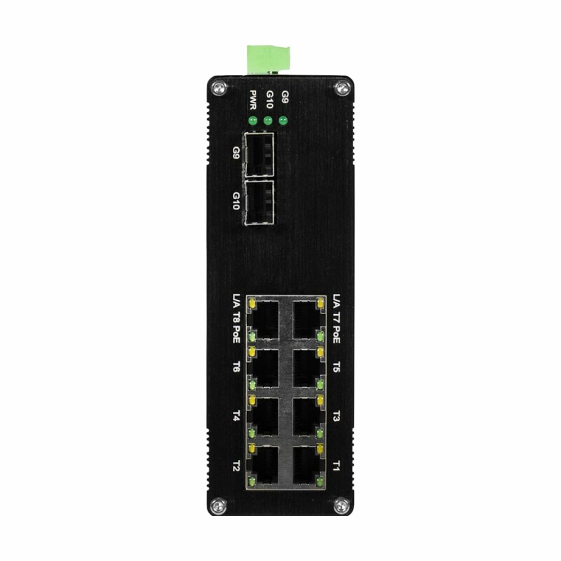 - PoE-комутатор має 10 портів, з них 8 портів PoE RJ45 10/100/1000M/2.5G Base-T і 2 порти SFP+ 1.25G/2.5G/10G Base-X.