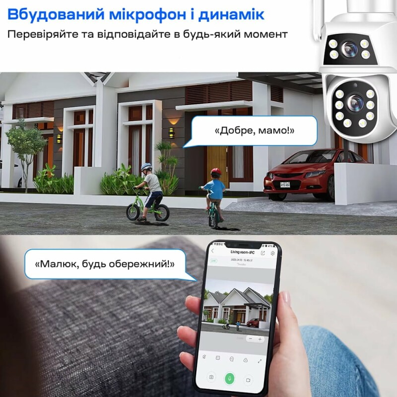 - Підтримка двостороннього аудіозв’язку (мікрофон і динамік)