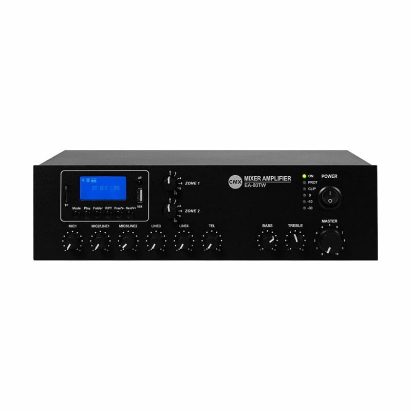 Настільний двоканальний мікшуючий підсилювач CMX EA-60TW з WiFi, з вихідною потужністю 60 Вт і підтримкою потокового мовлення через Bluetooth і WiFi. Вбудований медіаплеєр з MP3/USB/FM-тюнером/Bluetooth, слот для SD-карти. Підтримує віддалене керування через застосунок WiFi Legacy Player на смартфоні. Має два виходи на гучномовці 70 В/100 В/4-16 Ом.