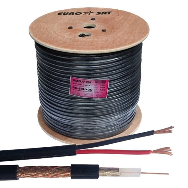 Коаксіальний кабель RG-59+2x0.5 EUROSAT — це високоякісний комбінований кабель, призначений для зовнішнього монтажу. Кабель має коаксіальну конструкцію, з центральною жилою діаметром 0,60 мм, виготовленою з міді (CU), що забезпечує високу частотну пропускну здатність і мінімальні втрати сигналу.