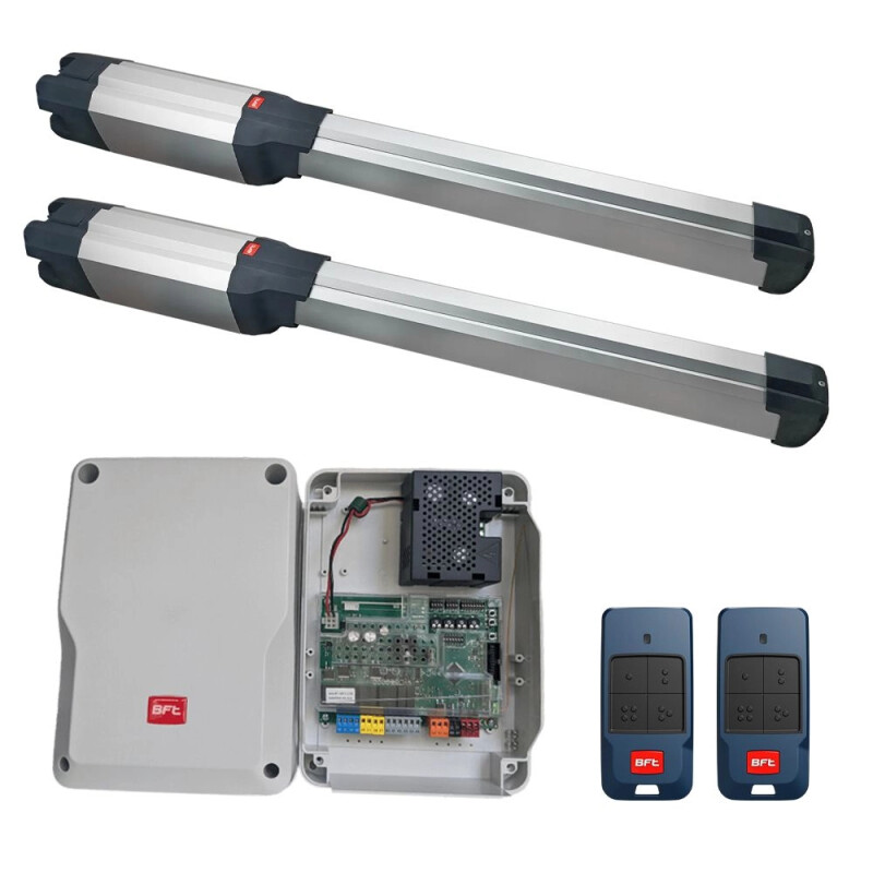 Комплект автоматики BFT PHOBOS BT B25 KIT призначений для розпашних воріт з довжиною стулки до 3 метрів і вагою до 500 кг. Привід лінійного типу зі збільшеним ходом штока 330 мм дозволяє відкривати ворота на кут до 120°, зберігаючи компактні габарити корпусу. Модель розроблена на базі попередньої версії PHOBOS BT A25 і отримала ряд конструктивних і функціональних доопрацювань. Електроприводи виконані в оновленому дизайні з посиленою механікою, а монтаж став зручнішим завдяки перенесенню магнітних кінцевиків на верхню частину корпусу і впровадженню технології вібровідгуку при спрацьовуванні.
