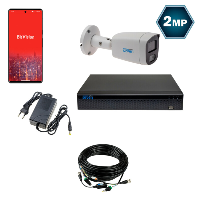 До готового комплекту системи відеоспостереження SEVEN KS-7621O-2MP входить