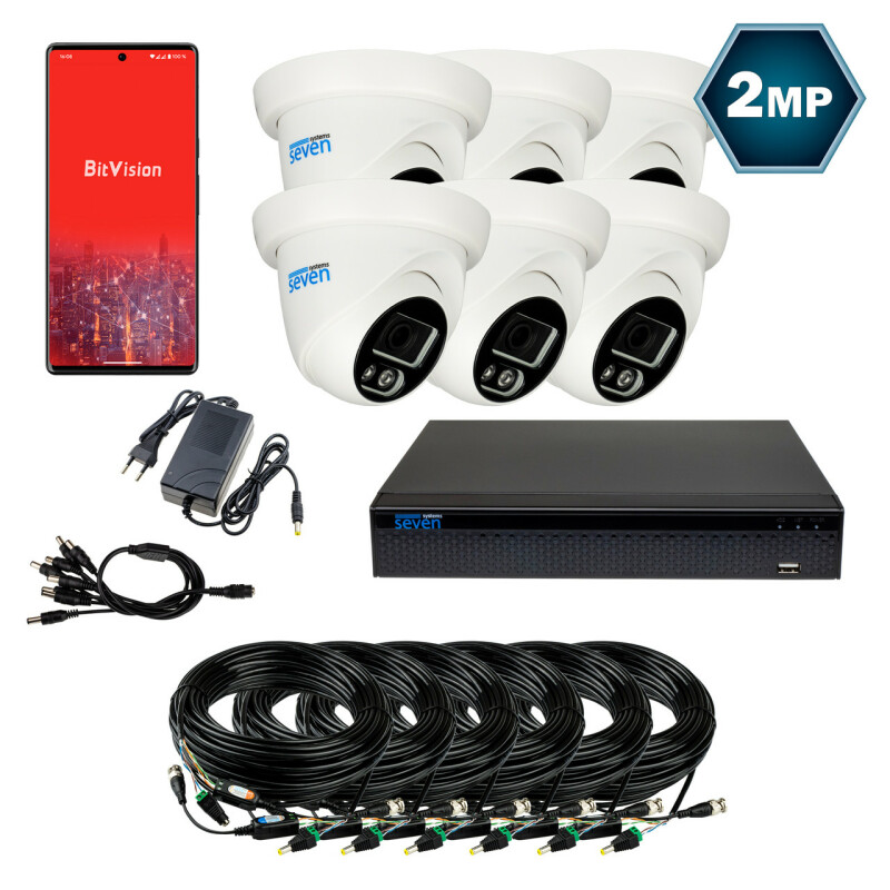 Camsecurity - магазин сучасних технологій комфорту та безпеки\\Комплект відеоспостереження на 6 купольних 2 Мп аналогових камер SEVEN KS-7616OW-2MP