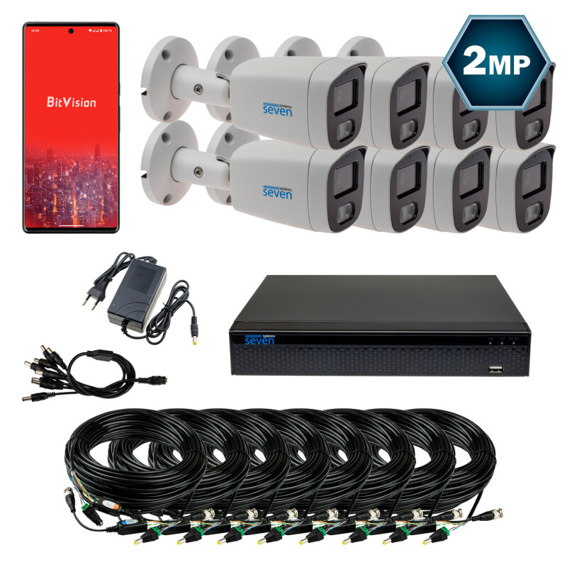 Camsecurity - магазин сучасних технологій комфорту та безпеки\\Комплект відеоспостереження на 8 циліндричних 2 Мп аналогових камер SEVEN KS-7628O-2MP