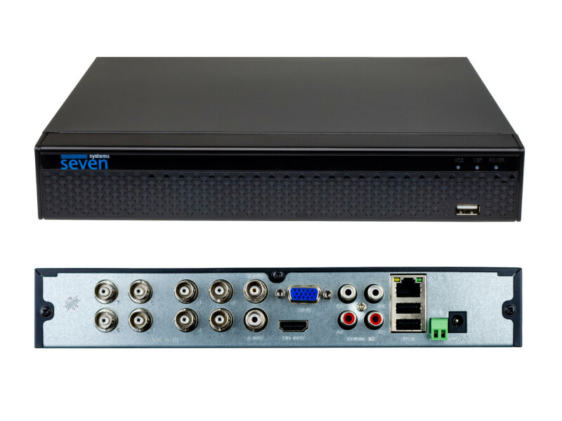 В комплект відеоспостереження входить гібридний мультиформатний відеореєстратор SEVEN MR-7608 до якого можна підключити 8 внутрішніх або зовнішніх мультиформатні камери. Даний реєстратор також дозволить з часом розширити систему з допомогою додавання IP-відеокамер або ж повністю замінити всі камери на IP.