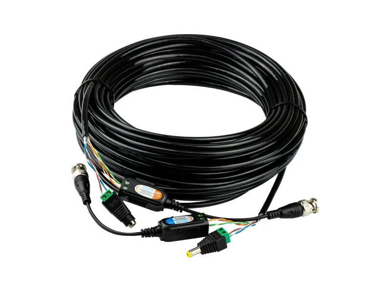 Підключення камер до відеореєстратораДля під'єднання камер SEVEN до відеореєстратора в комплекті передбачено кабель кручена пара з розрахунку 20 м на кожну камеру та комплекти роз'ємів живлення і спеціальних прийомопередавачів. Для зручності користувач може самостійно визначати довжину кожного кабелю для під'єднання відеокамери з огляду на особливості його об'єкта. На кабелі з боку відеокамери монтується прийомопередавач і роз'єм живлення "тато", а з боку відеореєстратора - прийомопередавач і роз'єм живлення "мама". За допомогою такого кабелю до відеокамери під'єднують BNC роз'єм прийомопередавача для передавання відео та конектор живлення "тато" для подачі на камеру живлення 12В. Другий кінець кабелю під'єднується роз'ємом BNC до відеореєстратора і роз'ємом живлення "мама" до блоку живлення. Досить просто під'єднати камеру до живлення і відеореєстратора, після чого він визначить камеру і покаже з неї зображення.