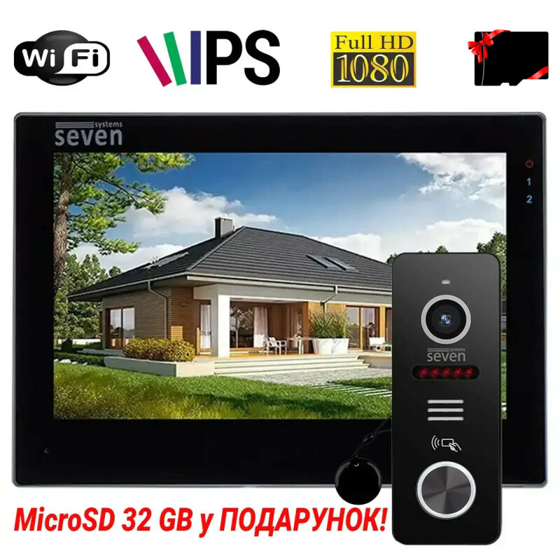 Комплект Wi-Fi відеодомофону SEVEN DP-7577/02Kit black для квартири, приватного будинку чи офісу