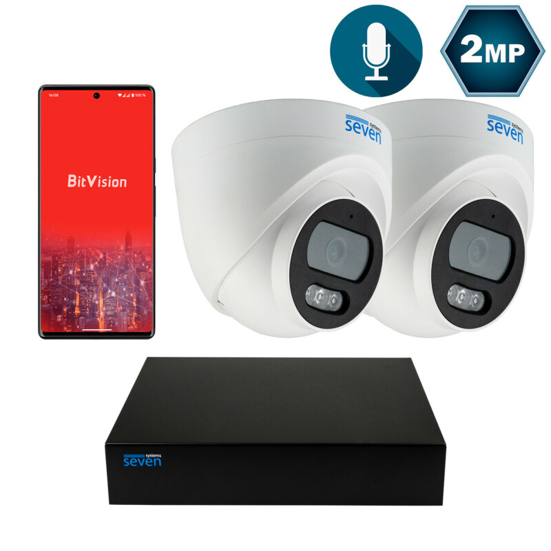 Camsecurity - магазин сучасних технологій комфорту та безпеки\\Комплект відеоспостереження на 2 купольні 1080p IP-відеокамери SEVEN 2D2
